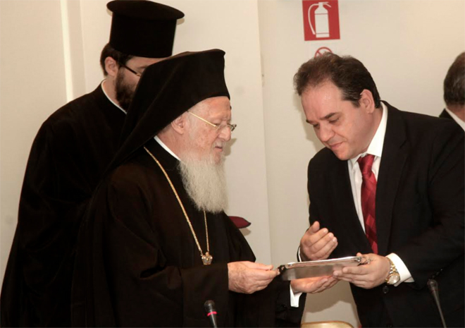 Τον Οικουμενικό Πατριάρχη συνόδευαν ο μητροπολίτης Περγάμου Ιωάννης, ο αρχιγραμματέας της Ιεράς Συνόδου Βαρθολομαίος Σαμαράς και ο κ. Νικόλαος Μαγγίνας.