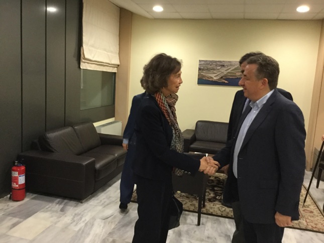 Στο αεροδρόμιο Ηρακλείου «Νίκος Καζαντζάκης» την υποδέχτηκε ο περιφερειάρχης Κρήτης Σταύρος Αρναουτάκης μαζί με τον πρόξενο της Ισπανίας στην Κρήτη, Μηνά Μελισσίδη, καθώς και ο αερολιμενάρχης Γιώργος Πλιάκας και ο Αστυνομικός Δ/ντης Ηρακλείου Κώστας Λαγουδάκης.