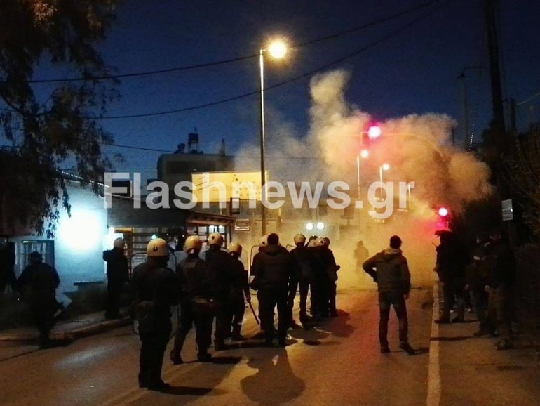 Το κλίμα μύριζε από νωρίς μπαρούτι. Τα επεισόδια δεν άργησαν να ξεσπάσουν μετατρέποντας τη λεωφόρο Σούδας σε πεδίο μάχης, με πετροπόλεμο, ρίψη κρότου λάμψης και εμπρησμό κάδων απορριμμάτων.