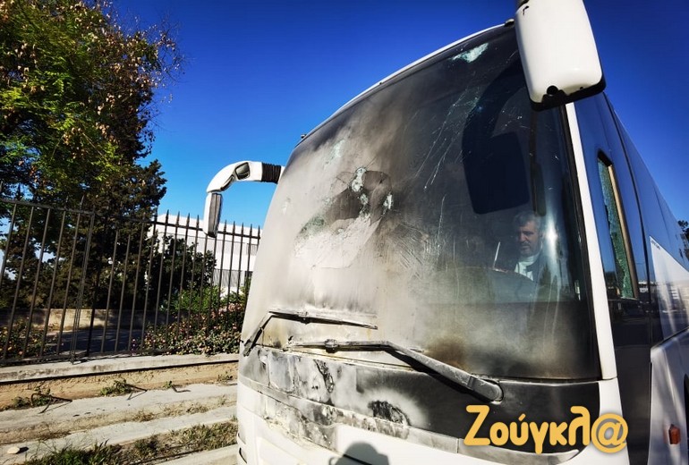 Από τις μολότοφ προκλήθηκε φωτιά, από την οποία κάηκε ολοσχερώς ένα τουριστικό λεωφορείο. Σοβαρές ζημιές υπέστη ένα δεύτερο και μικρότερες ένα τρίτο λεωφορείο, τα οποία ήταν σταθμευμένα επί της Λεωφόρου Αθηνών, ακριβώς έξω από τη σχολή. Για την κατάσβεση επιχείρησαν 10 πυροσβέστες με 3 οχήματα. Η αστυνομία προσήγαγε 9 άτομα, τα οποία στη συνέχεια αφέθηκαν ελεύθερα.
