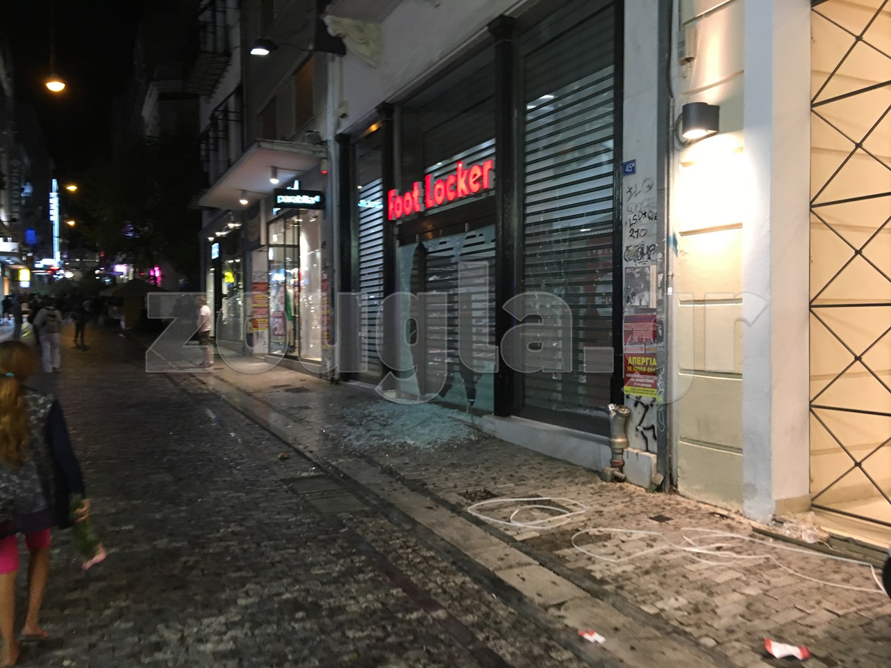 Οι νεαροί από την πλατεία Μοναστηρακίου επιτέθηκαν σε αστυνομικούς με πέτρες. Οι αστυνομικοί έκαναν χρήση χημικών και στη συνέχεια η ομάδα των νεαρών, ανεβαίνοντας την Ερμού προκάλεσαν ζημιές σε βιτρίνες καταστημάτων και σε σταθμευμένα οχήματα.