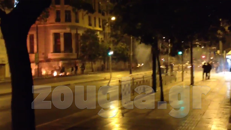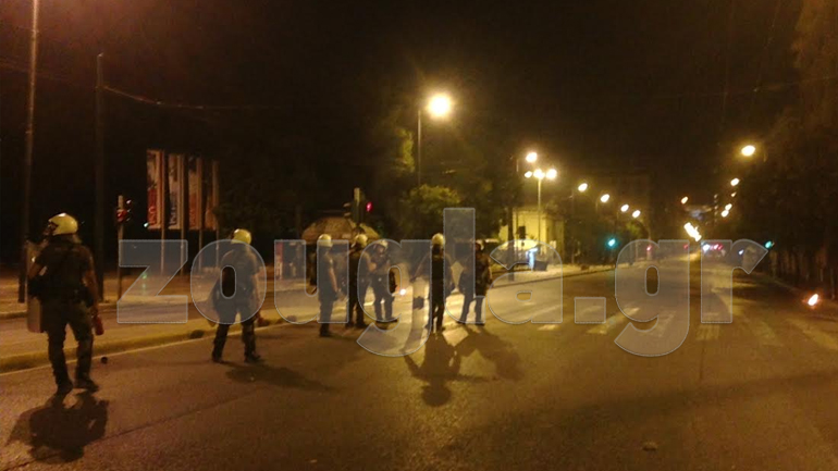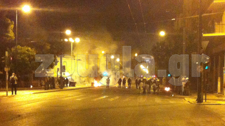 Λίγο πριν τις 2:00 τα ξημερώματα της Κυριακής άγνωστοι επιτέθηκαν σε διμοιρία των ΜΑΤ που βρισκόταν στην περιοχή, με τους τελευταίους να απαντούν με χειροβομβίδες κρότου – λάμψης και χρήση χημικών.