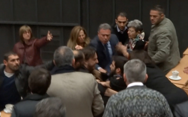 Μετά από αυτό το γεγονός η ένταση γενικεύθηκε, όπως βλέπουμε και στο βίντεο. Σγουρός και Τσουκαλάς ήρθαν στα χέρια, ενώ εκνευρισμένος ο βουλευτής του ΣΥΡΙΖΑ και περιφερειακός σύμβουλος, Στάθης Παναγούλης επιτέθηκε σε άλλους συναδέλφους του.