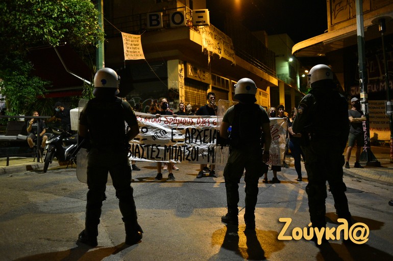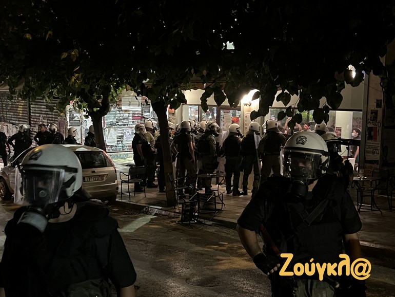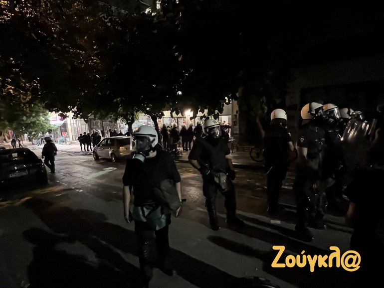 Οι αστυνομικές δυνάμεις φέρεται να έχουν πραγματοποιήσει τουλάχιστον δέκα προσαγωγές, ενώ σε μαγαζί «ταμπουρώθηκαν» δεκάδες άτομα, στη συμβολή των οδών Στουρνάρη και Τσαμαδού.