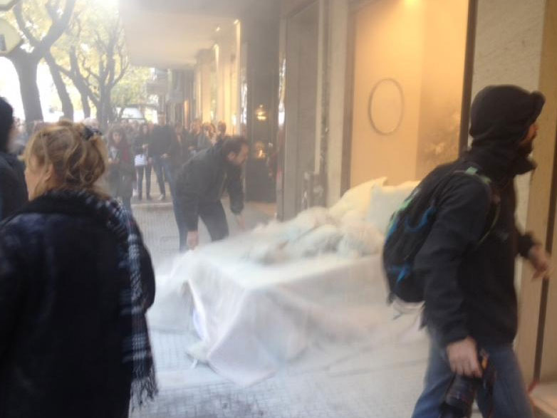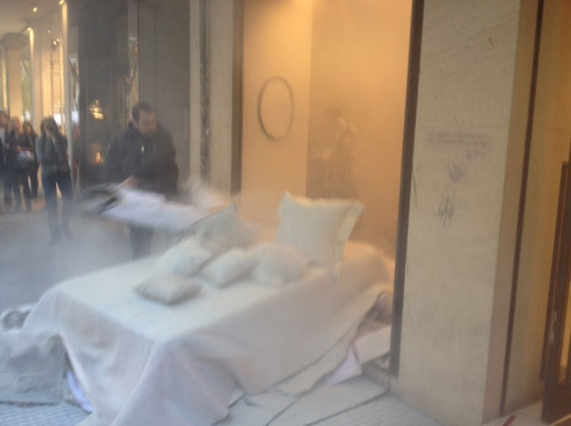 Επί της οδού Τσιμισκή, μάλιστα, έβγαλαν στο πεζοδρόμιο ένα… κρεβάτι από το εσωτερικό καταστήματος γνωστής αλυσίδας με είδη σπιτιού!