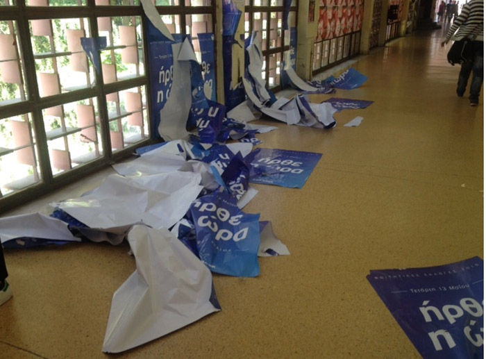 Οι νεαροί εισήλθαν στο Πανεπιστήμιο και κρατώντας στα χέρια τους διάφορα αντικείμενα, προκάλεσαν ζημιές και συγκρούστηκαν με φοιτητές.