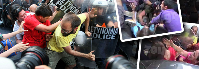 (Η στάση της αστυνομίας προκάλεσε την αντίδραση των δημοσιογράφων, μερικοί εκ των οποίων συνεπλάκησαν με τα ΜΑΤ!)