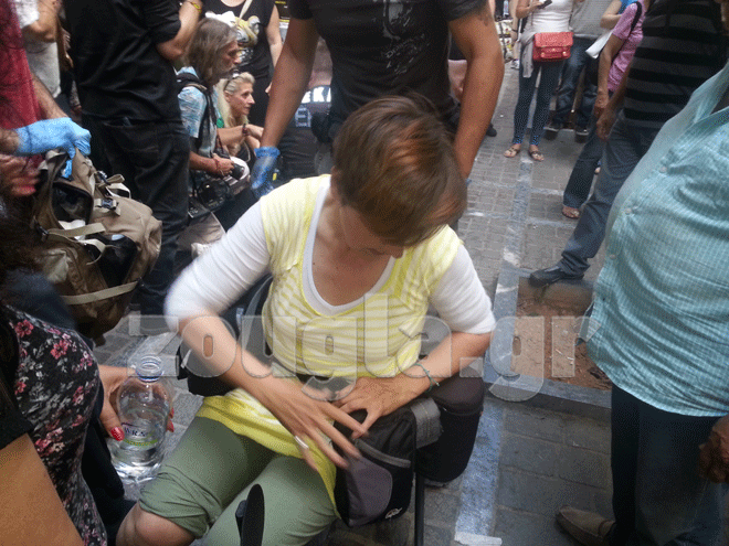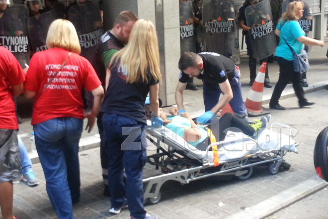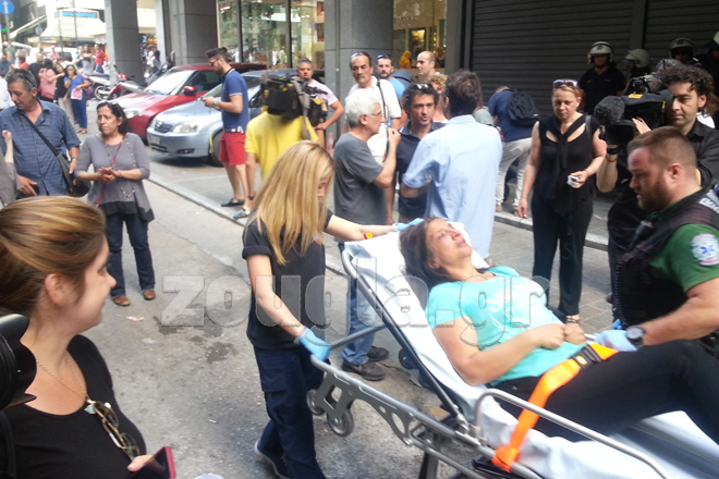Εκεί ξέσπασαν επεισόδια μεγαλύτερης αγριότητας, ενώ από την επέμβαση της αστυνομίας δύο από τις καθαρίστριες έχουν δεχτεί χτυπήματα στο κεφάλι, ενώ το ΕΚΑΒ παρέλαβε μία από αυτές. Από τα χτυπήματα των αστυνομικών δεν γλίτωσαν ούτε φωτορεπορτέρ, όπως η Τατιάνα η Μπόλαρη που έχει δεχτεί χτυπήματα στο κεφάλι και τα νεφρά και μεταφέρθηκε στο νοσοκομείο, ενώ η καθαρίστρια Δέσποινα Κωστοπούλου έχει δεχθεί χτυπήματα στο κεφάλι και είναι σε ημιλιπόθυμη κατάσταση.