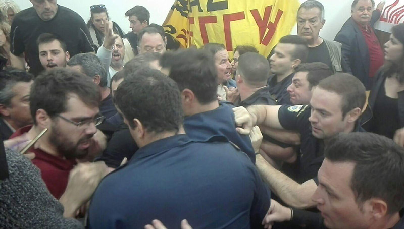 Οι διαμαρτυρόμενοι μπήκαν στην αίθουσα και ακολούθησε ένταση.