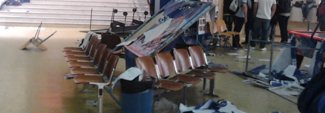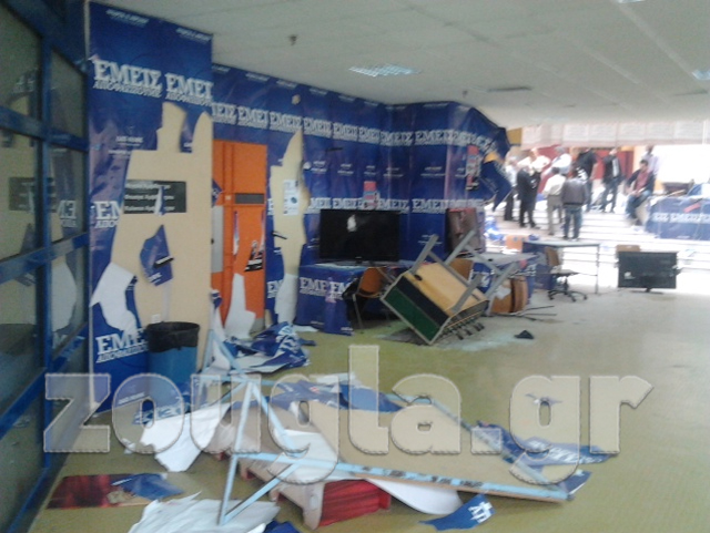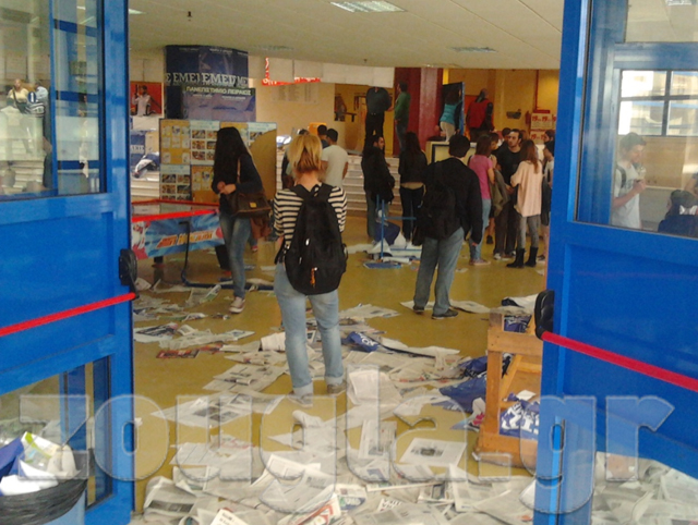 Οι νεαροί έσπασαν όλα τα σταντ στα οποία είχαν αναρτηθεί αφίσες και πλακάτ από Μη Κυβερνητικές Οργανώσεις. Σύμφωνα με αυτόπτες μάρτυρες που μίλησαν στη zougla.gr, κατέφθασε ασθενοφόρο στον χώρο του πανεπιστημίου και παρέλαβε τρεις τραυματισμένους φοιτητές.