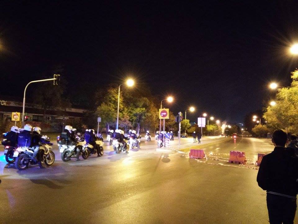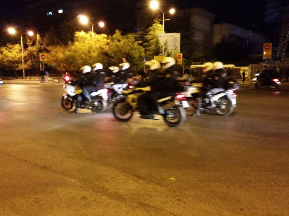 Η Αστυνομία έκανε αισθητή την παρουσία της με δικυκλιστές της ΕΛΑΣ και ΜΑΤ που επιχειρούν να απωθήσουν τους διαδηλωτές χωρίς χρήση χημικών.