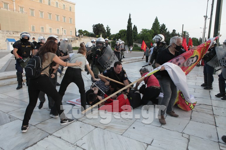 Επεισόδια σημειώθηκαν στο κέντρο της Αθήνας, κοντά στο μνημείο του Αγνώστου Στρατιώτη, ανάμεσα σε δυνάμεις των ΜΑΤ και σε ομάδες διαδηλωτών.