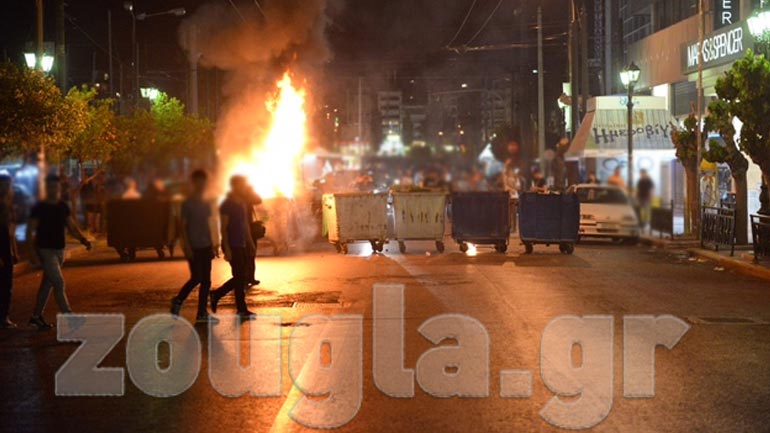 Μικρή ομάδα νεαρών έστησε οδοφράγματα και κατευθύνθηκε προς το αστυνομικό τμήμα Πειραιά όπου και πέταξε αντικείμενα.