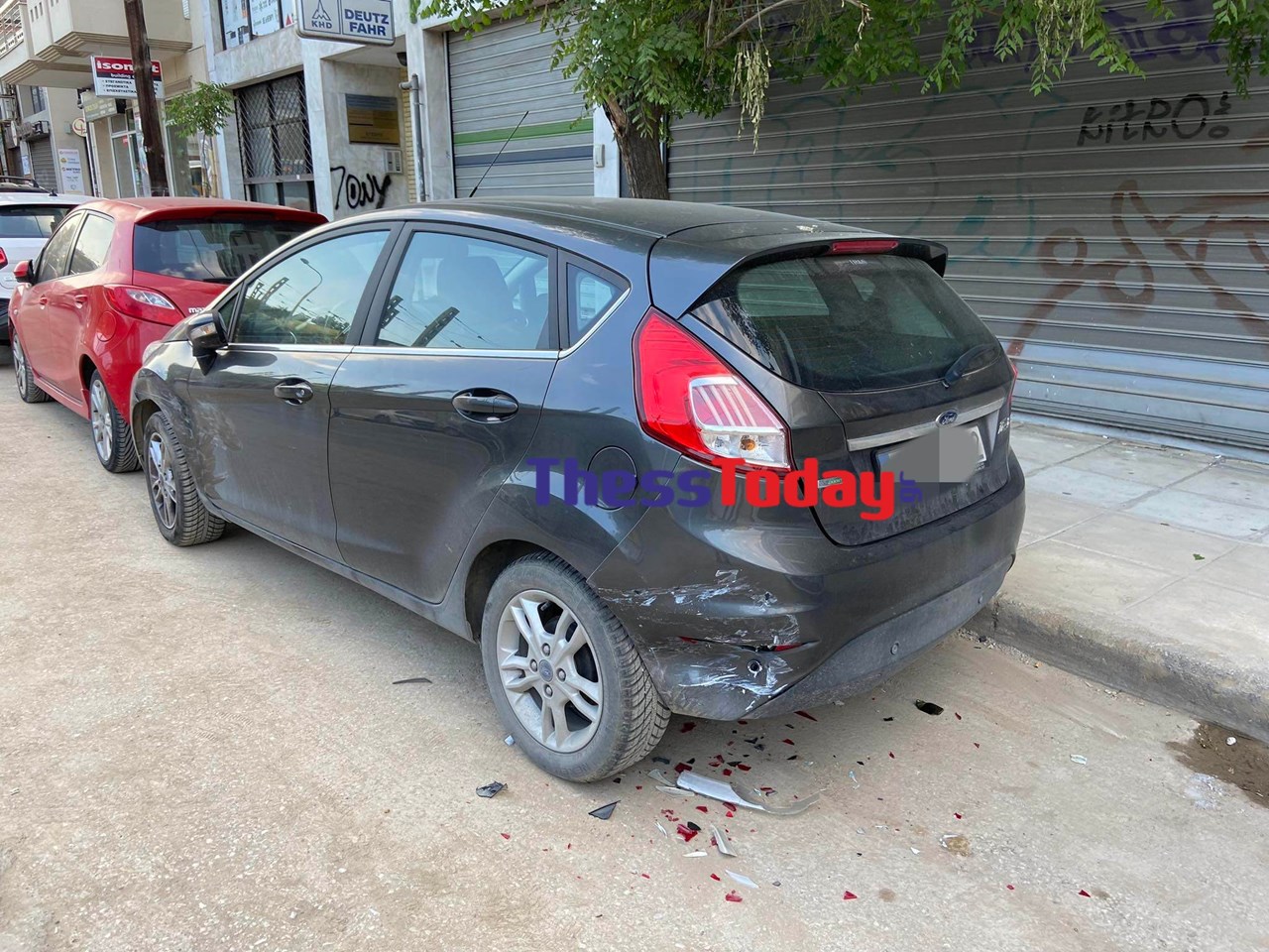 Τελικά μέσω της Μοναστηρίου κινήθηκε στη Μιχαήλ Καλού και εκεί επειδή έτρεχε με ιλιγγιώδη ταχύτητα, έχασε τον έλεγχο και προσέκρουσε πάνω σε ένα αυτοκίνητο, στο οποίο προκάλεσε υλικές ζημιές, ενώ ελάχιστες φθορές προκλήθηκαν και σε ακόμη ένα σταθμευμένο όχημα.