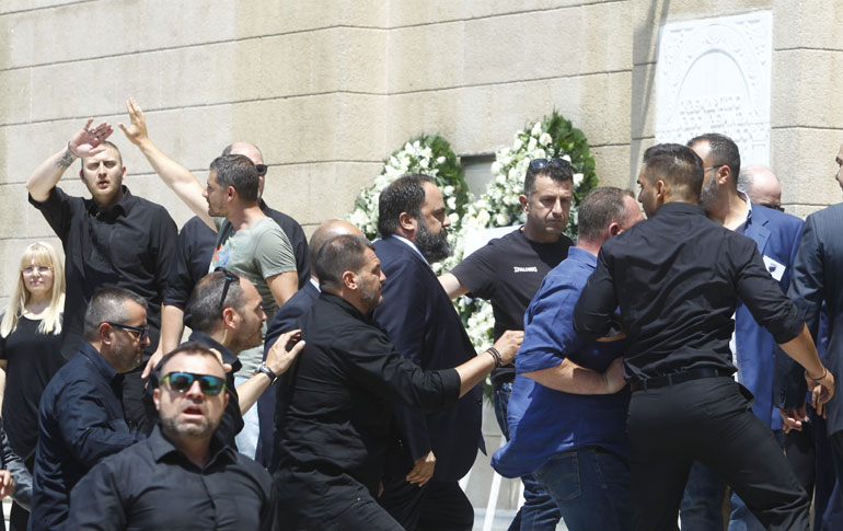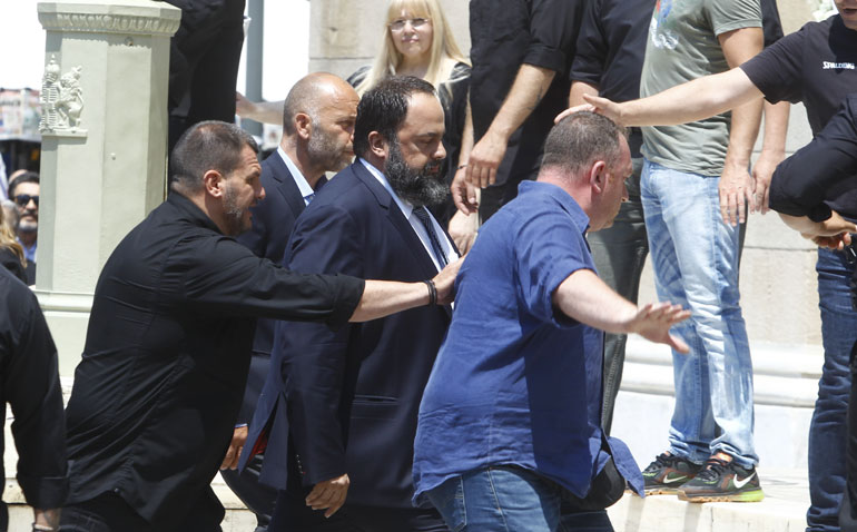 Κατά την άφιξη του Βαγγέλη Μαρινάκη στην Ιερά Μητρόπολη Αθηνών, όπου τελείται η κηδεία του Παύλου Γιαννακόπουλου, άγνωστοι πέταξαν μπουκάλια και φώναζαν συνθήματα κατά του εφοπλιστή.
