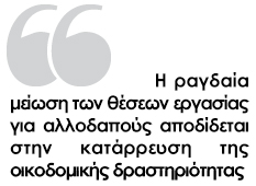 Το 2013 είχε απομείνει μόνο το 1/3 των ασφαλισμένων στον χώρο της οικοδομής και οι θέσεις των αλλοδαπών περιορίστηκαν από 52.621 σε μόλις 16.089. Δραματική μείωση καταγράφεται και στον αριθμό των επιχειρήσεων στον εν λόγω κλάδο. Οι «εργοδότες» ήταν 43.808 στο τέλος του 2009 και μειώθηκαν σε μόλις 16.046 στα τέλη του 2013.