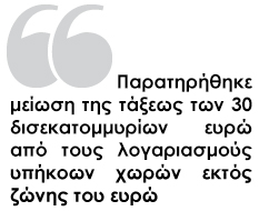 Αντίκτυπος, όμως, υπάρχει και στις καταθέσεις των τραπεζών, όπου παρατηρήθηκε μια πολύ μεγάλη μείωση της τάξεως των 30 δισεκατομμυρίων ευρώ, από τους λογαριασμούς κατοίκων εκτός ζώνης του ευρώ, από το 2010 έως το 2014.