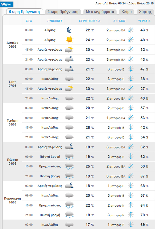 Αλλάζει το σκηνικό του καιρού από σήμερα, Δευτέρα 6 Μαΐου καθώς, ο καθαρός ουρανός θα δώσει τη θέση του σε νεφώσεις που θα φέρουν βροχές στα πεδινά και καταιγίδες στα ορεινά, ενώ, όσον αφορά στις υψηλές για την εποχή θερμοκρασίες, αυτές θα υποχωρήσουν.