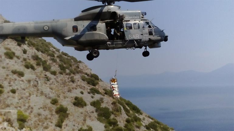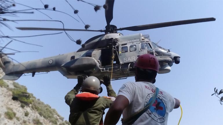 Αφού σταθεροποιήθηκε η κατάσταση της υγείας του, ειδοποιήθηκαν οι αρμόδιες αρχές και τελικά πολύ γρήγορα εγκρίθηκε η αεροδιάσωση με ελικόπτερο Super Puma της Πολεμικής Αεροπορίας. Τα μέλη της ΕΟΔ βρισκόταν εξαρχής σε συνεχή επικοινωνία με τον κυβερνήτη του ελικοπτέρου μέσω ασυρμάτου, γεγονός που διευκόλυνε την προσέγγιση του τραυματία, καθώς το ελικόπτερο έφτασε σε μόλις 15 λεπτά. Η επιχείρηση στέφθηκε με επιτυχία παρά τη δυσκολία λόγω του δύσβατου της περιοχής και της μορφολογίας του εδάφους.