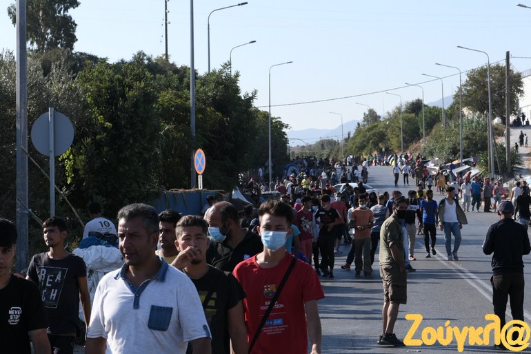 Εκεί έχουν συγκεντρωθεί κυρίως οικογένειες οι οποίες έχουν και μικρά παιδιά. Η συγκέντρωση αυτών των ανθρώπων επιτεύχθηκε με διάδοση της πληροφορίας από στόμα σε στόμα και σε οικειοθελή βάση. Οι υπόλοιποι μετανάστες από το σύνολο των 12.700 της Μόριας είναι διεσπαρμένοι στην περιοχή. Η συγκέντρωσή τους θα απαιτήσει ως φαίνεται την κινητοποίηση σημαντικών αστυνομικών δυνάμεων με κλούβες. Αυτός είναι ο λόγος της εσπευσμένης μεταφοράς νέων δυνάμεων της Αστυνομίας στο νησί που συνοδεύονται από κλούβες αλλά και αύρες.