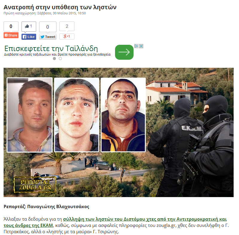 Σύμφωνα με πληροφορίες του zougla.gr, το σπίτι είχε νοικιαστεί με πλαστά στοιχεία το 2014 από τον Σπύρο Δραβίλα, ο οποίος αυτοκτόνησε στο κρησφύγετο της Ν. Αγχιάλου προκειμένου να μη συλληφθεί. Υπενθυμίζεται πως στη μεζονέτα στη Χρυσή Ακτή Παναγιάς συνελήφθησαν οι Σπύρος Χριστοδούλου και Γρηγόρης Τσιρώνης.