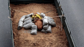 Αφού, αποσυνδεθεί με επιτυχία ο πυροκροτητής, στη συνέχεια θα την τοποθετήσουν πάνω σε ένα φορτηγό και θα την σκεπάσουν με άμμο, ώστε να μην δέχεται κραδασμούς.