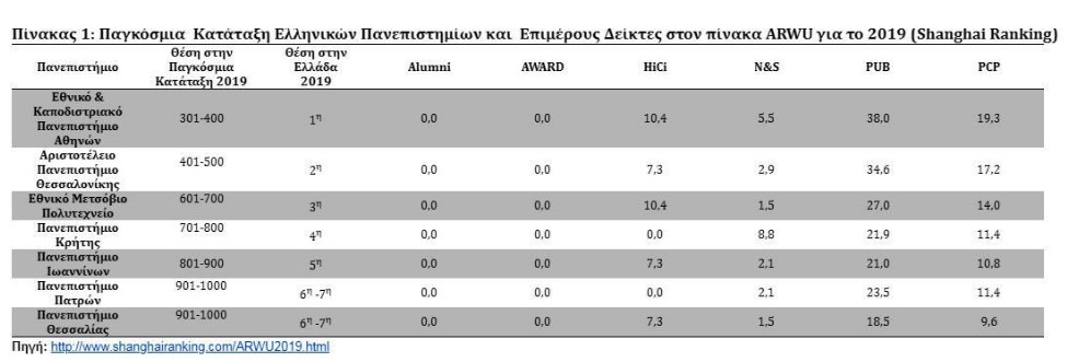 Επτά ελληνικά πανεπιστήμια βρίσκονται μεταξύ των καλύτερων του κόσμου με βάση τη λίστα που ανακοινώθηκε από τον ανεξάρτητο μη κερδοσκοπικό οργανισμό «Shanghai Ranking Consultancy».