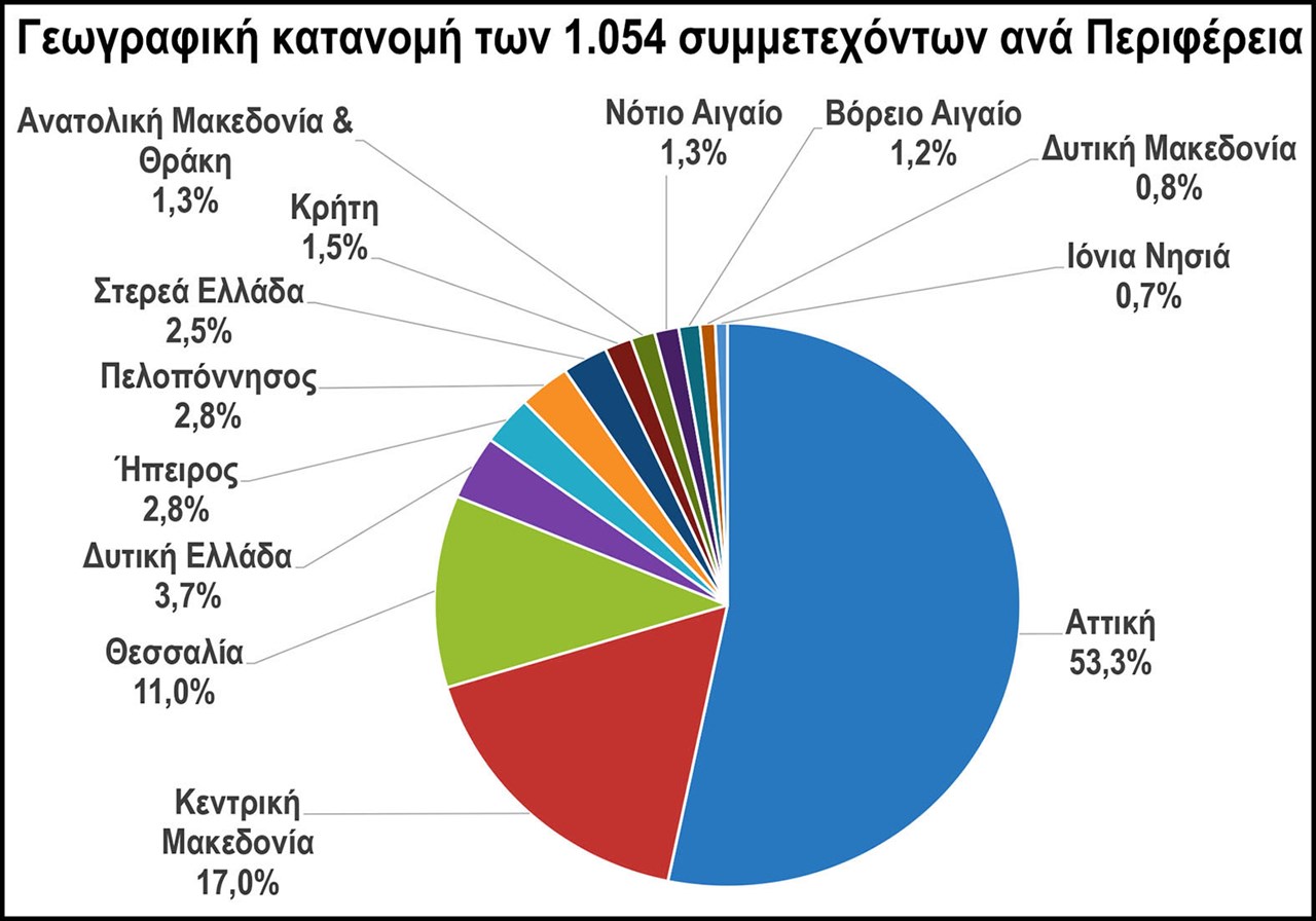 Η γεωγραφική κατανομή των 1.054 συμμετεχόντων στην έρευνα στις 13 Περιφέρειες της χώρας φαίνεται στο παρακάτω γράφημα: