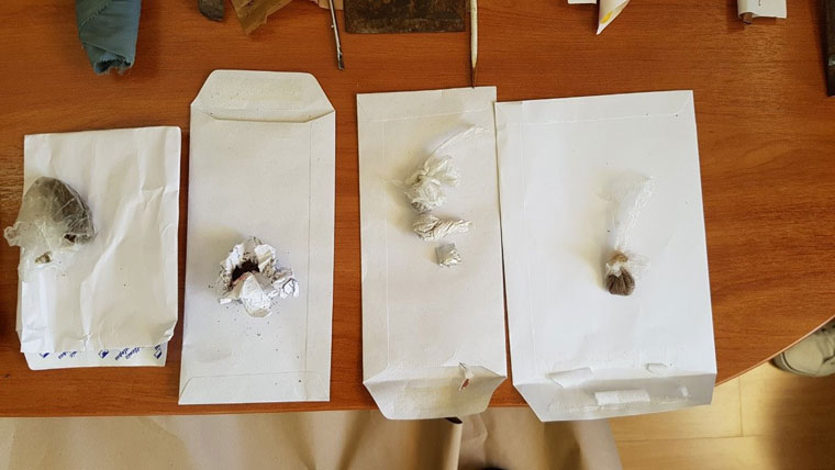 Κατά τη διεξαγωγή της έρευνας που έγινε παρουσία εισαγγελέα και στην οποία συμμετείχαν αστυνομικοί σκύλοι εντοπίστηκαν και κατασχέθηκαν: