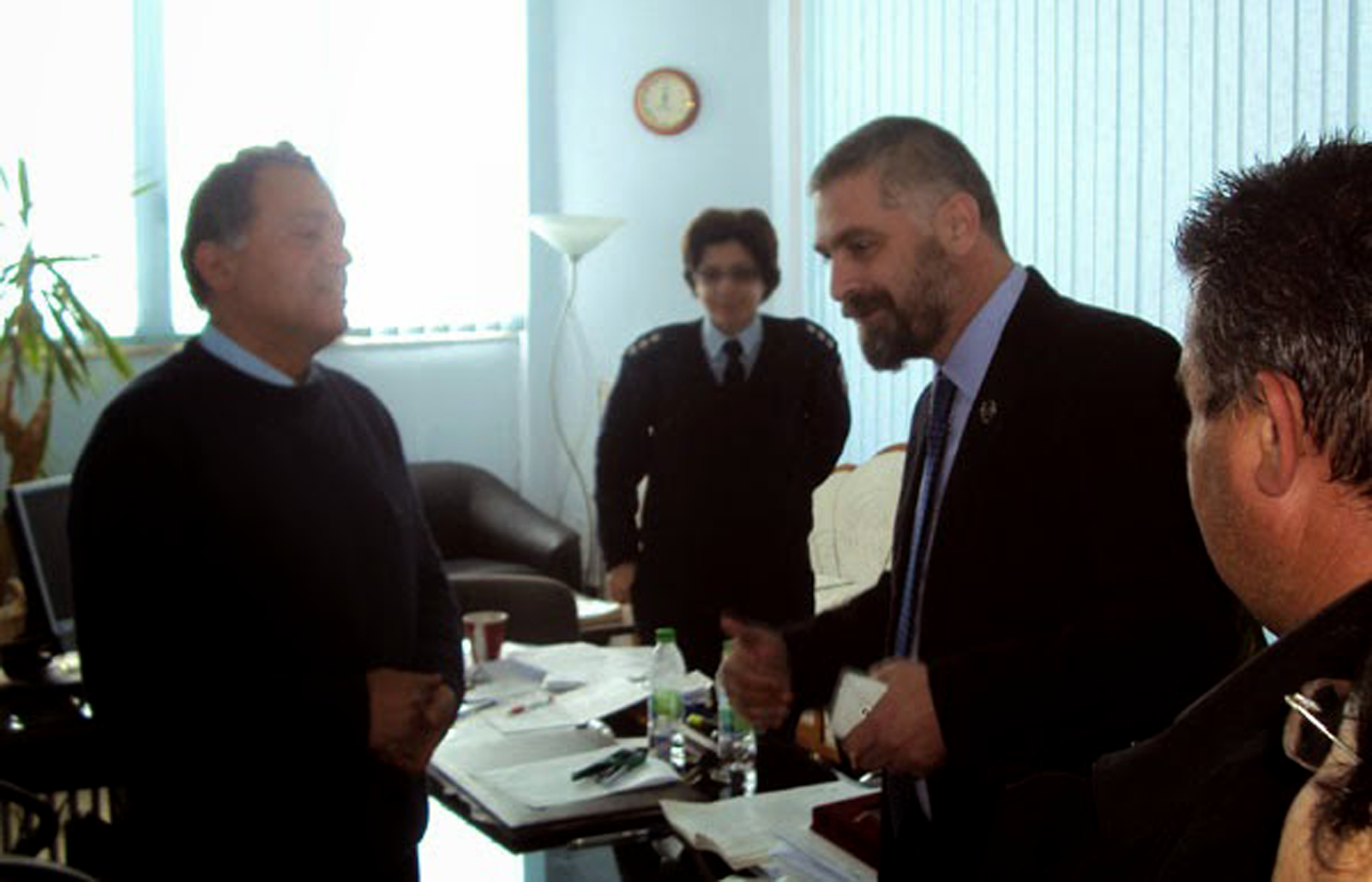 Στην φωτογραφία, βλέπουμε τον Διοικητή της Τροχαίας Χαλκίδας, Κώστα Αργύρη ο οποίος καλωσόρισε και συνομίλησε για αρκετή ώρα με τον υποψήφιο Περιφερειάρχη Απόστολο Γκλέτσο, αλλά και με το υπόλοιπο κλιμάκιο της ΧΑ ( ανάμεσα τους και η γυναίκα του Βουλευτή Νίκου Μίχου).
