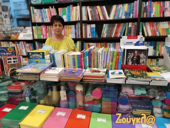 Η κα. Νίνα Γαλανοπούλου είναι ιδιοκτήτρια ενός εκ των πιο εμβληματικών βιβλιοπωλείων στο Περιστέρι. Η «Βιβλιούπολη» της μετρά σχεδόν τρεις δεκαετίες. Η γνώμη της κας. Γαλανοπούλου έχει ιδιαίτερη βαρύτητα γιατί είναι ένας άνθρωπος που ξέρει τη γλώσσα της αγοράς στο συγκεκριμένο τομέα. Η ίδια μιλώντας στη zougla.gr υπογραμμίζει, «Προσπαθούμε να συγκρατήσουμε τις τιμές, έχει υπάρξει μια μικρή πτώση του χαρτιού και την περάσουμε και εμείς στο τετράδιο. Πολύ μεγάλο ρόλο παίζει τι προμήθειες έχουν τα παιδιά από την προηγούμενη χρονιά, τις οποίες πάντα χρησιμοποιούνε και το ίδιο ισχύει και για τη σχολική τσάντα». Στην συνέχεια απαντά στο ερώτημα πόσο κοστίζει ο σχολικός εξοπλισμός για ένα παιδί δημοτικού και αντίστοιχα γυμνασίου. «Το πακέτο για το παιδί του δημοτικού κοστίζει 60-80 € μαζί με την τσάντα, χωρίς την τσάντα 20-30€ είναι η γραφική ύλη (πέντε τετράδια, γεωμετρικά όργανα, μπλοκ ζωγραφικής,μαρκαδόροι αλλά απλές εκδοχές δεν αναφερόμαστε σε σπιράλ τετράδια για παράδειγμα αλλά στα μπλε τα κλασικά). Του γυμνασίου είναι 30 με 40€, γιατί αγοράζουν για το μάθημα της τεχνολογίας πολλά είδη, με την τσάντα φθάνει το πακέτο 80€».