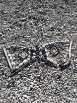 Ανάμεσα στις δημιουργίες ξεχωρίζουν ένα πολύχρωμο πουλί, ένα περίτεχνο καράβι με κατάρτι από ξύλο και πανί από βότσαλα, στολισμένο με μια ελληνική σημαία, μια γοργόνα, ένας ήλιος που ατενίζει τη θάλασσα, ένα ζευγάρι γυαλιά ηλίου και ένα σπιράλ έργο τέχνης.