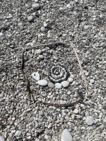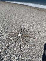 Χρησιμοποιώντας φυσικά υλικά, όπως βότσαλα, ξύλα και άλλα αντικείμενα που βρέθηκαν στην ακτή, δημιούργησε μια σειρά από εντυπωσιακά έργα τέχνης, αναδεικνύοντας τη δημιουργική της φαντασία.