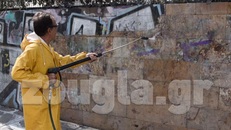 Eργασίες καθαρισμού στο παρά πέντε της ομιλίας Τσίπρα