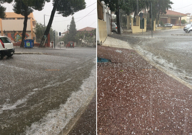 Μπουρίνι «χτύπησε» το Σάββατο διάφορες περιοχές της Θεσσαλονίκης. Έντονη βροχόπτωση, συνοδευόμενη από χαλάζι κατά διαστήματα, σημειώθηκε το μεσημέρι στο Ωραιόκαστρο.