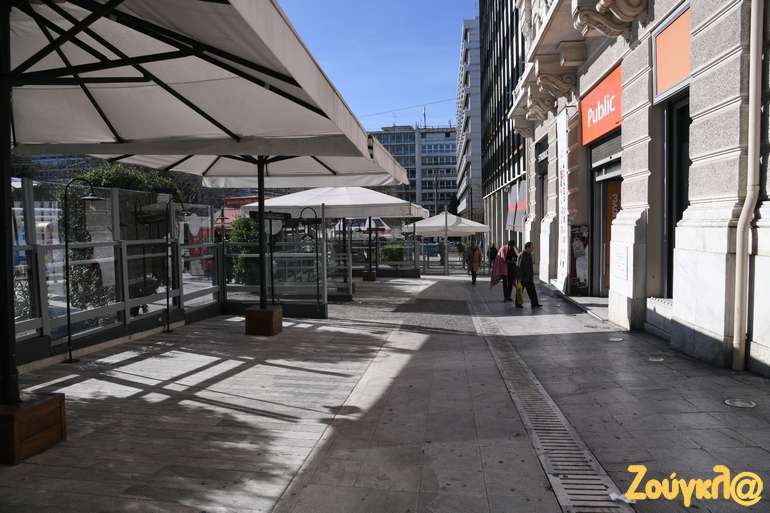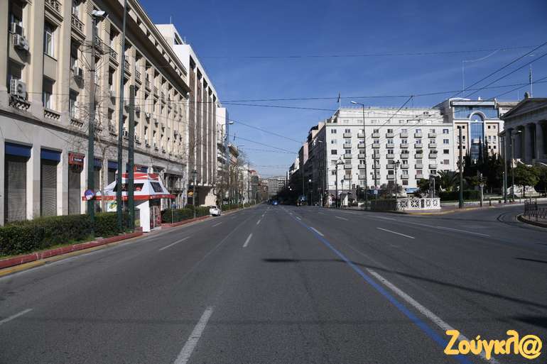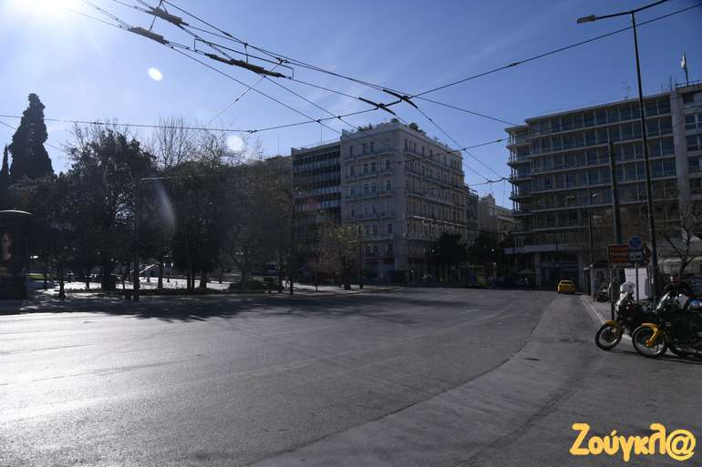 Όπως θα δείτε και στις φωτογραφίες του zougla.gr οι δρόμοι είναι άδειοι αφού εμπορικά κέντρα, ταβέρνες και καφετέριες έχουν κατεβάσει ρολά.