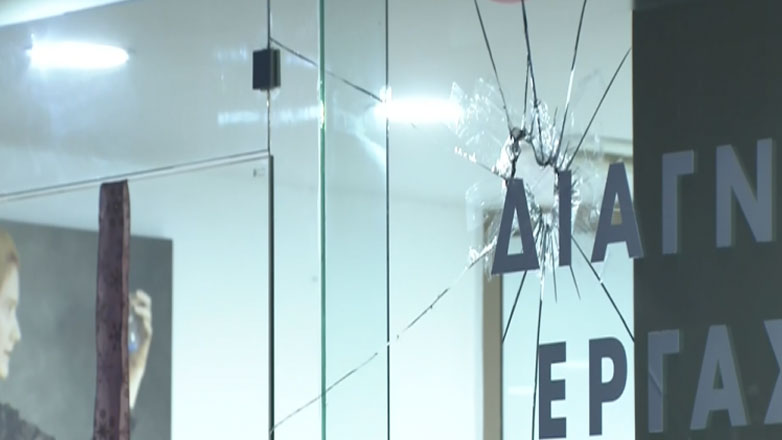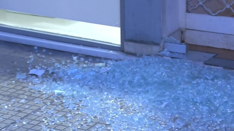 Η τζαμαρία του ενός από τα καταστήματα με ρωγμές