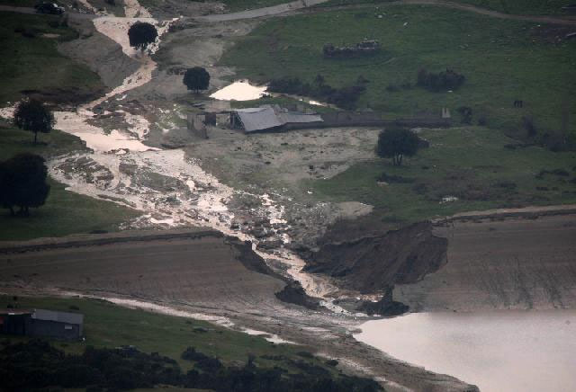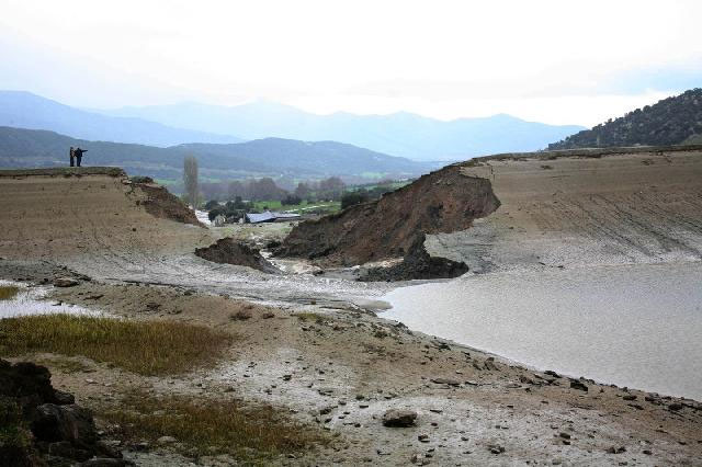 Χιλιάδες κυβικά νερού ξεχύθηκαν στον κάμπο της Ελασσόνας καταστρέφοντας δρόμους και χωράφια με καλλιέργειες όταν το μεσημέρι της Κυριακής έσπασε το φράγμα του ταμιευτήρα Σπαρμού στον Όλυμπο.