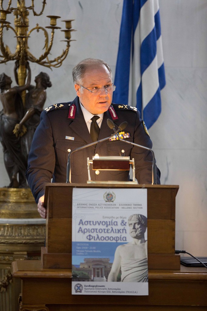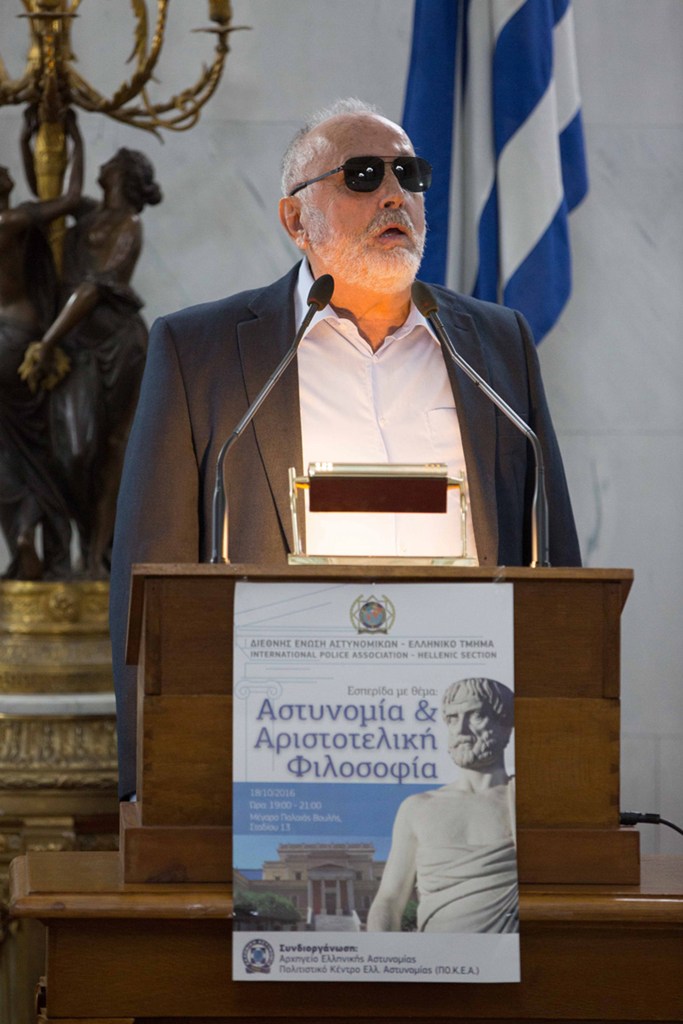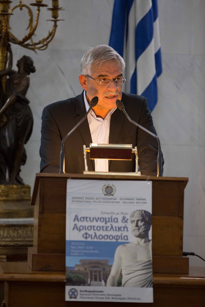 Μια εξαιρετικά ενδιαφέρουσα Εσπερίδα με θέμα «Αστυνομία και Αριστοτελική Φιλοσοφία» συνδιοργανώθηκε χθες, 18 Οκτωβρίου 2016, στο μέγαρο της Παλαιάς Βουλής στην Αθήνα από το Αρχηγείο της Ελληνικής Αστυνομίας, το Πολιτιστικό Κέντρο της Ελληνικής Αστυνομίας και το Ελληνικό Τμήμα της Διεθνούς Ένωσης Αστυνομικών.