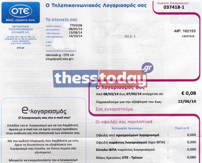 Δεν κοστολόγησε σωστά και στέλνει λογαριασμό αξίας μόλις οκτώ λεπτών ο ΟΤΕ. Μάλιστα… μόνο για οκτώ λεπτά, τύπωσε, φακέλωσε, ταχυδρόμησε και θα απασχοληθεί η ταμίας συν και η αξία του χαρτιού για 8 λεπτά.