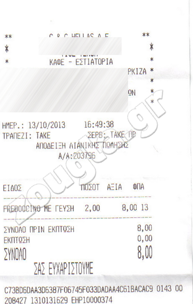 Ιδού η απόδειξη… 8 ευρώ για δύο καφέδες.Για κάθε πληροφορία, στη Ρώμη ο καφές κοστίζει 2.30 ευρώ και σερβίρεται με σοκολατάκι ! ΑΙΣΧΡΟΚΕΡΔΕΙΑ, ΧΩΡΙΣ ΤΕΛΟΣ».