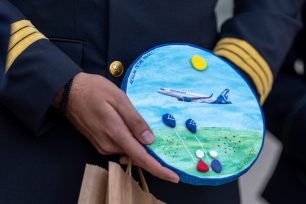 Οι πιλότοι χειροκροτούν και τραγουδούν με τα παιδιά Χριστουγεννιάτικα τραγούδια