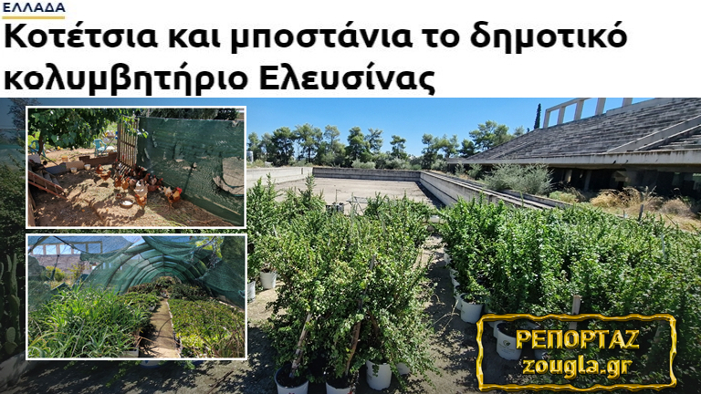 Η ηλεκτρονική εφημερίδα zougla.gr με εκτενές ρεπορτάζ την Δευτέρα 18 Σεπτεμβρίου 2023,ανέδειξε την πλήρη αδιαφορία της δημοτικής διοίκησης Ελευσίνας που είχε ως αποτέλεσμα οι εγκαταστάσεις του δημοτικού κολυμβητηρίου να έχουν μετατραπεί σε μποστάνια, κοτέτσια και σύγχρονα φυτώρια και όλα αυτά εν γνώσει της δημοτικής αρχής και συγκεκριμένα με την ανοχή του δημάρχου Ελευσίνας Αρ. Οικονόμου και του Αντιδημάρχου Καθαριότητας, Περιβάλλοντος και Πολιτικής Προστασίας Λεωνίδα Παππά.