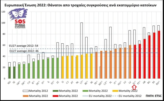 Την Τρίτη 20 Ιουνίου δημοσιοποιήθηκε ο απολογισμός των θανάτων και τραυματισμών από τροχαίες συγκρούσεις σε Ευρωπαϊκό επίπεδο για το 2022 από το ETSC (Ευρωπαϊκό Συμβούλιο Ασφάλειας των Μεταφορών). Η γνωστοποίηση αυτών των δεδομένων πέντε μέρες πριν από τις εκλογές στη χώρα μας θα περίμενε κανείς ότι θα προκαλούσε ένα κάποιο πολιτικό και δημοσιογραφικό ενδιαφέρον.