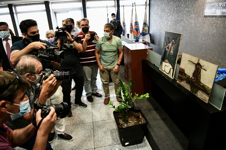 φερε τους πίνακες από ένα σπίτι στον Περισσό που τους είχε σε κρύπτη, στην περιοχή της Κερατέας και μετά σε μια ρεματιά, όπου σύμφωνα με τους αστυνομικούς που τους εντόπισαν μετά την ομολογία του ήταν καλά φυλαγμένοι και προσεκτικά τοποθετημένοι. Σημειώνεται πως στην κατοχή του δεν βρέθηκε το τρίτο έργο που είχε αποσπάσει, του Ιταλού Γκλουλιέλμο Κάτσια. Όπως ισχυρίστηκε, κατά την κλοπή το τσαλάκωσε και καταστράφηκε.