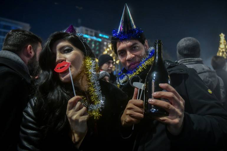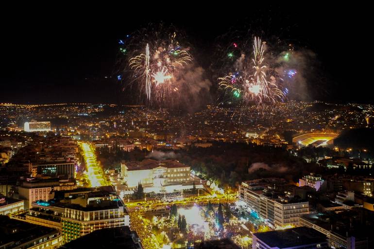 Μεγάλη γιορτή στήθηκε στην πλατεία Συντάγματος στην Αθήνα για την υποδοχή του νέου έτους.