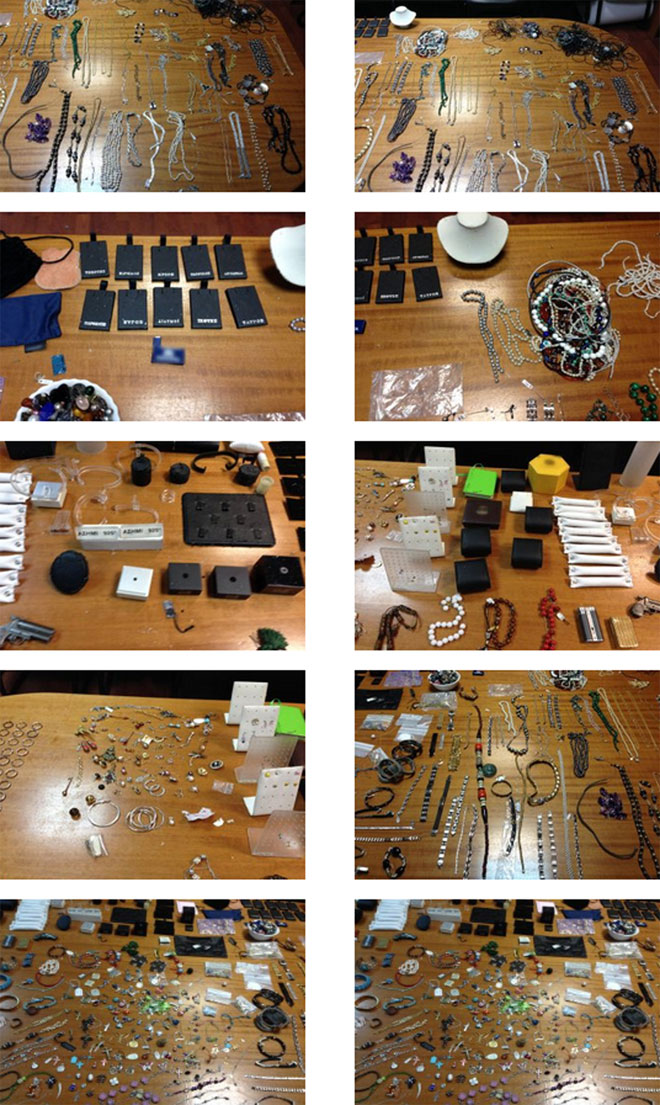 • Την 12-02-2013 μετέβησαν σε κοσμηματοπωλείο στη Νέα Ιωνία και, αφού παραβίασαν τα ρολά ασφαλείας και έθραυσαν την τζαμαρία του καταστήματος, αφαίρεσαν κοσμήματα, συνολικής αξίας 17.500 ευρώ.