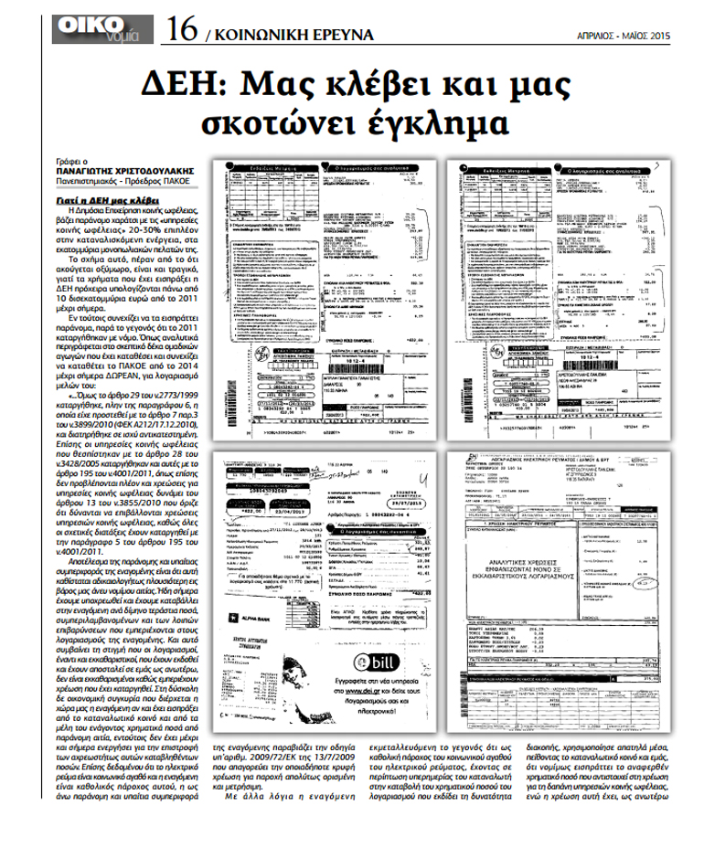 Όπως επεσήμανε ο πρόεδρος του Κέντρου, η εφημερίδα του ΠΑ.Κ.Ο.Ε., έχει πολλές φορές αναφερθεί αναλυτικά με δημοσιεύματα στη ΔΕΗ και στις χρεώσεις.