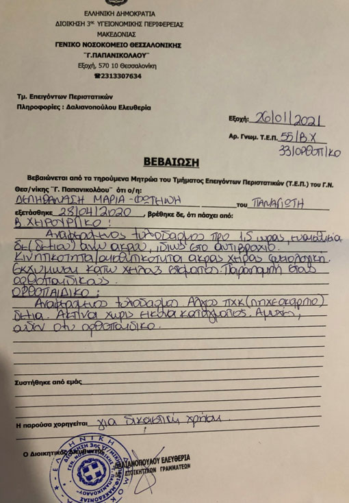 Δείτε τη βεβαίωση του νοσοκομείου