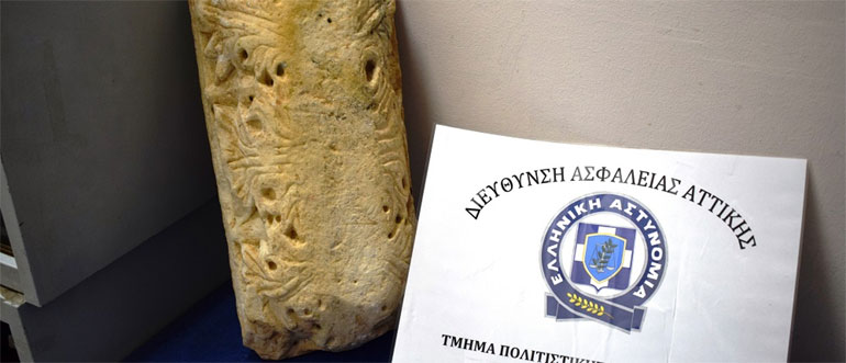 Ειδικότερα, έπειτα από κατάλληλη αξιοποίηση πληροφοριών αναφορικά με διακίνηση αρχαίου κινητού μνημείου, εντοπίστηκε στην αρχή αδιέξοδου δρόμου, επιμελώς κρυμμένο, ανάμεσα σε λίθους και εντός σάκου μεταφοράς αγροτικών προϊόντων, το ανωτέρω μνημείο.